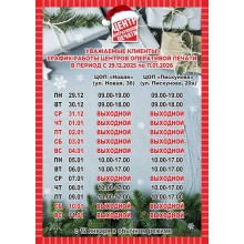 Ознакомьтесь с графиком работы "Центров Оперативной Печати" в период с 28.12.2024 по 09.01.2025